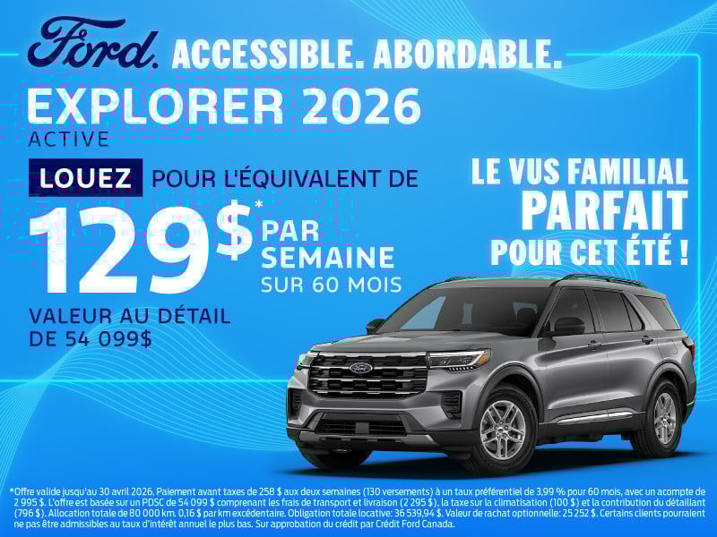L’Explorer 2026 est décliné en cinq versions distinctes : Active, ST-Line, Tremor, Platinum et ST. La version Active cible les familles recherchant confort et équipements essentiels. La ST-Line ajoute un look sport et des touches technologiques avancées. Pour l’aventure, le Tremor propose des pneus tout-terrain, une suspension calibrée et un différentiel à glissement limité en plus d’une garde au sol rehaussée. Quand on opte pour la version Platinum, place au luxe et au raffinement maximal avec sièges ventilés, matériaux haut de gamme et système audio premium. Enfin, la version ST vise les passionnés de performance par son moteur V6 exclusif et son allure musclée.