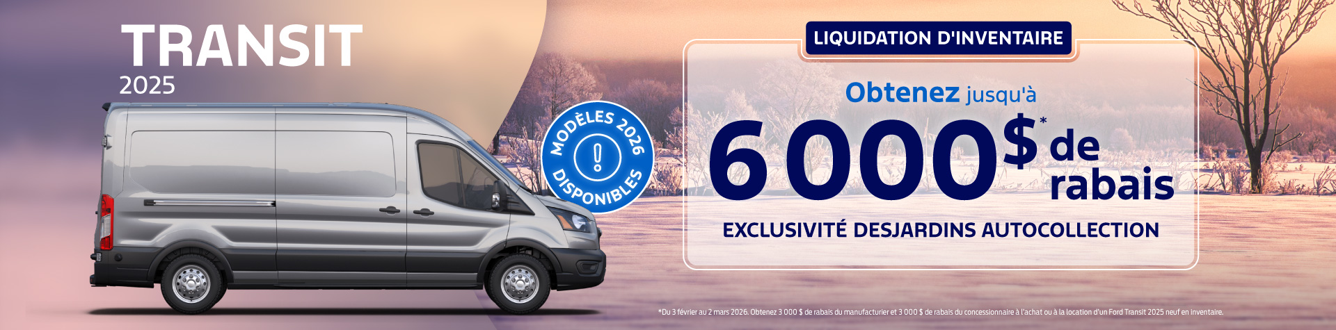 Le Transit 2026 est propulsé par un V6 3,5 litres atmosphérique développant 275 chevaux et 260 lb-pi de couple. Pour les besoins plus exigeants, le V6 3,5 litres EcoBoost élève la puissance à 310 chevaux et le couple à 400 lb-pi. Dans les deux cas, la transmission automatique à 10 rapports assure une bonne distribution de la puissance, particulièrement utile lorsque le véhicule est chargé. Le rouage arrière demeure la configuration standard, mais un système à rouage intégral intelligent est livrable. Cette option améliore la stabilité sur chaussée glissante et optimise la traction lors des démarrages en pente ou sur surface enneigée.